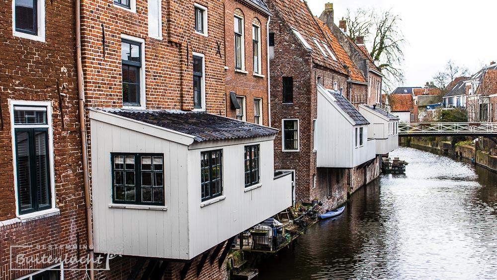Wat natuurlijk nooit mag ontbreken in een blog over de bezienswaardigheden in Appingedam zijn de hangende keukens boven het Damsterdiep. De hangende keukens zijn immer hét herkenningspunt van de stad. Vroeger waren deze gebouwen pakhuizen en hadden geen keukens. Tot halverwege de 19e eeuw. Toen werden de pakhuizen omgebouwd tot woonhuizen. Doordat de panden best smal waren, was er inpandig geen plaats voor een keuken. De keukens werden aan de buitenkant boven de gracht gehangen. Sinds 1972 zijn de hangende keukens van Appingedam een beschermd stadsgezicht.
